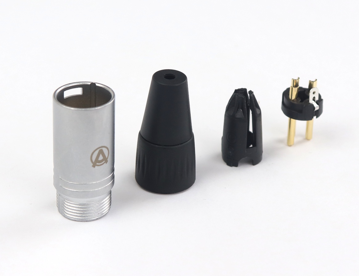 AuraSonics X3M-G - это акустический разъем XLR с 3-мя позолоченными контактами (3-pin), штекер (male/"папа"). Используется для распайки инструментальных или балансных межблочных акустических кабелей.
