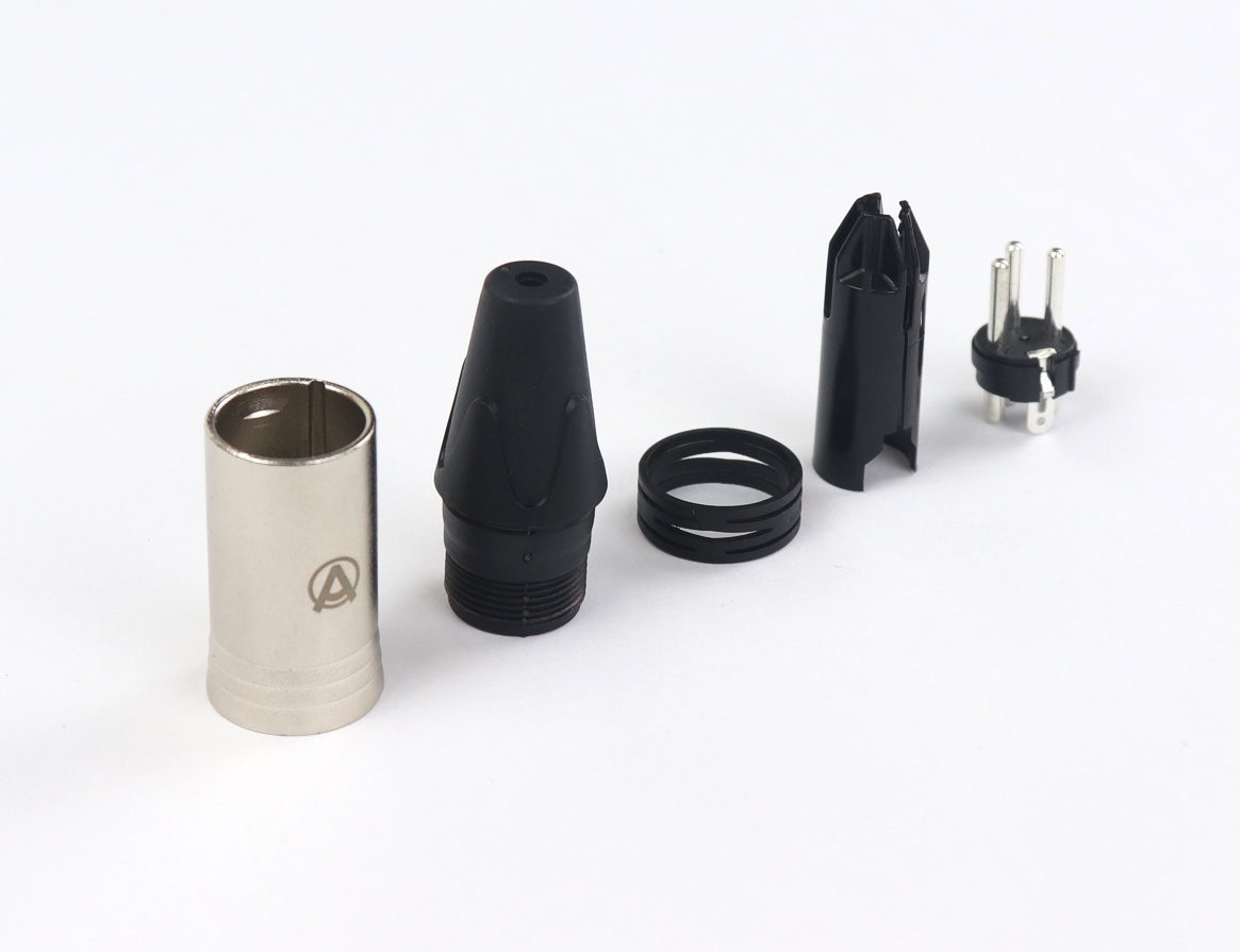 AuraSonics XN3M - это акустический разъем XLR с 3-мя посеребренными контактами (3-pin), штекер (male или "папа"). Используется для распайки инструментальных или балансных межблочных акустических кабелей.