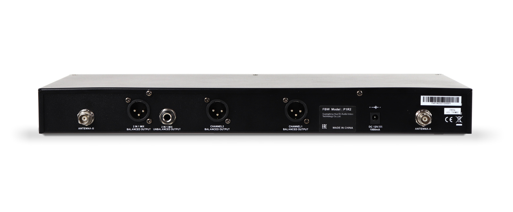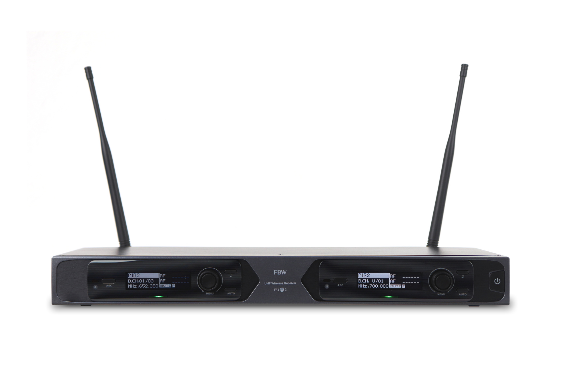 Двухканальный радиоприёмник FBW P1R2 является базовым устройством при построении микрофонных радиосистем различного назначения. Работает с радиопередатчиками компании FBW (P1B и P1H) или иных производителей, при условии обмена данными на тех же несущих радиочастотах (UHF диапазон 651МГц - 700МГц, задается до 1680 частотных каналов) и возможности синхронизации приемника с передатчиком посредством ИК-порта. Тип модуляции принимаемого от радиопередатчика акустического сигнала - FM (частотная).