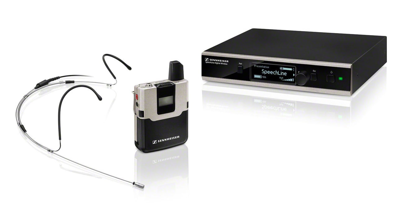 Sennheiser SL HEADMIC SET DW-3-EU R - представляет собой профессиональную радиосистему с головным микрофоном. Прекрасно подходит для самых различных ведущих (телевизионных или концертных), конференций, фитнес тренеров, видео блогеров и прочих.