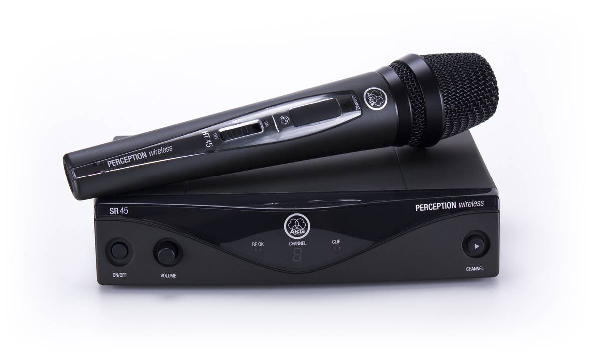 Данная радиосистема изготовлена известным австрийским производителем AKG, обладает превосходным качеством звука и портативностью, проста в использовании, отвечает всем европейским стандартам беспроводного оборудования и способна работать на 8 фиксированных частотах, которые лежат в диапазоне от 500 до 865 МГц с шагом переключения 30 МГц. Идеальное качество звучания обеспечивается благодаря специальной системе шумоподавления и шумоподавляющим фильтрам, которые встроены в ручной передатчик. Благодаря принципу включай и работай, система максимально проста и удобна в использовании. Она идеально подойдет для вокальных выступлений на небольших сценах, проведения небольших презентаций или любых других выступлений. В комплект поставки входит приемник SR 45, передатчик (ручной микрофон) HT 45, держатель микрофона, блок питания с адаптерами под различные разъемы и батарейка типа AA, для ручного микрофона.