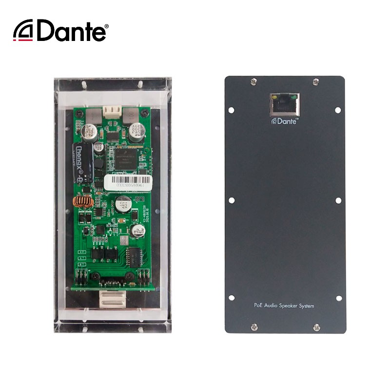 | Функциональные модули: | 1 вход Dante; усилитель класса D; аудиопроцессор DSP; источник PoE питани) |