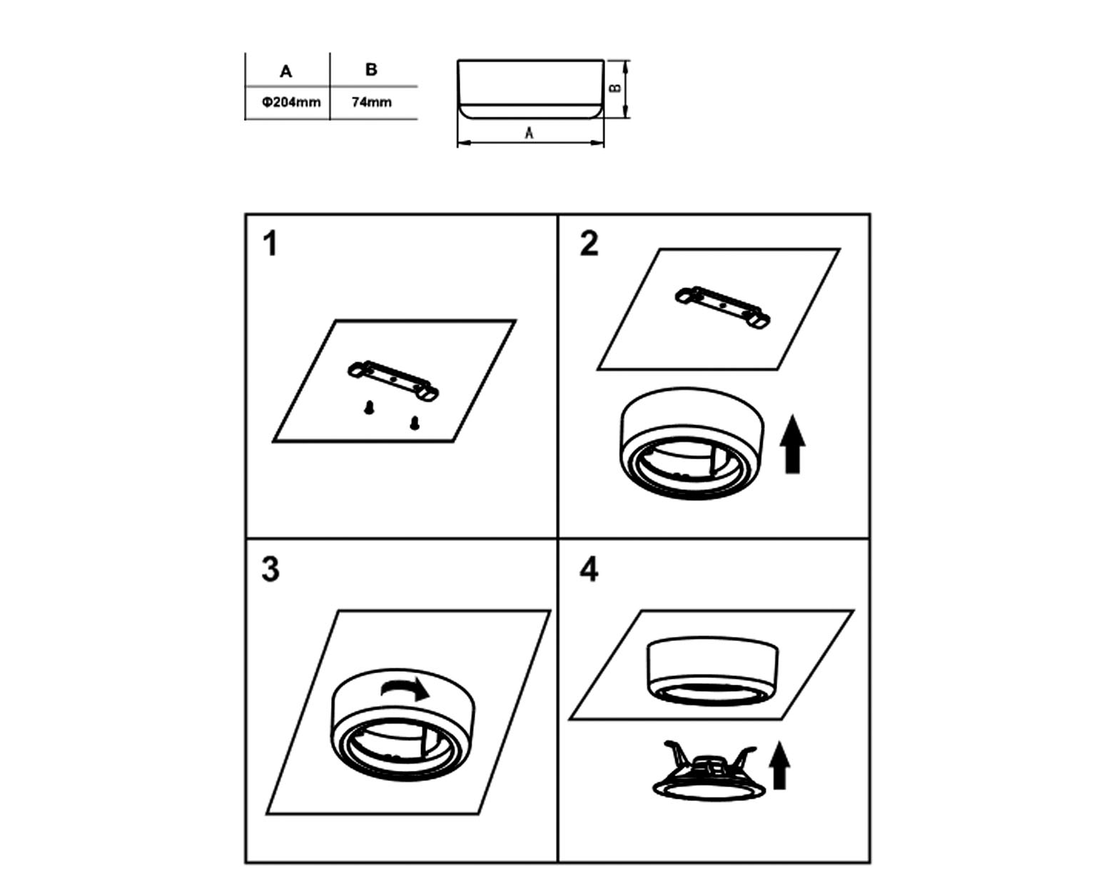 | Габаритные размеры: | Ø 204 мм, высота 74 мм |