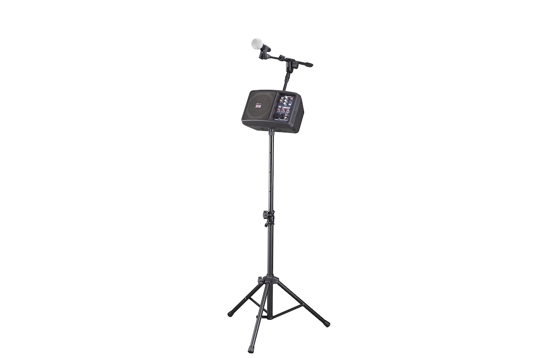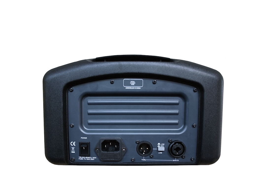Прибор оснащен одним динамиком диаметром 5", диапазон воспроизводимых частот 60 Гц - 18 кГц (по уровню -10 дБ), максимальный уровень звукового давления SPL = 115 дБ. Встроенный высокоэффективный усилитель класса D, RMS мощность 150 Вт, пиковая 300 Вт. Цифровой медиаплеер для воспроизведения музыкальных MP3-файлов с USB-носителя (используется соответствующий слот), поддерживает потоковое вещание с мобильного гаджета подключенного по беспроводной технологии Bluetooth. Управление звуком включает в себя: подключаемые системы объемного звучания DTS, DTS-HD, Dolby Pro Logic, Dolby Pro Logic II; независимый трехполосный эквалайзер (НЧ/СЧ/ВЧ); регулятор громкости. Для подключаемых микрофонов возможна активация фантомного питания +48В.