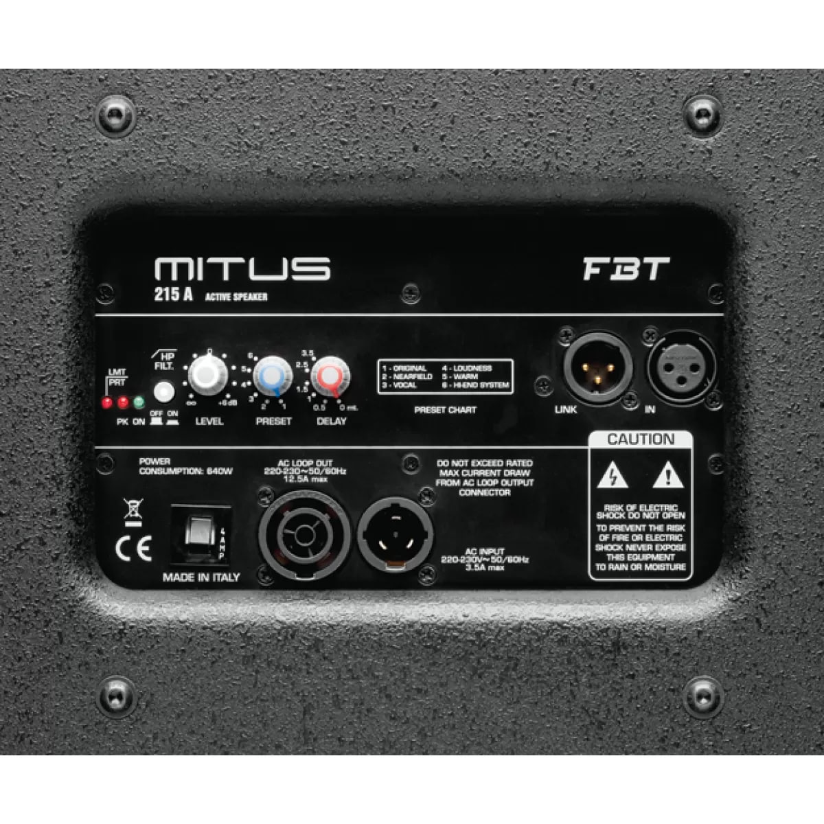 FBT MITUS 215A - двухполосная активная акустическая система из серии MITUS итальянского бренда FBT, в которой у всех моделей корпус типа "bass reflex". Это значит, что в корпусе есть порт (отверстие), которое соединено с трубкой (воздуховодом). Такая внутренняя конфигурация позволяет повысить эффективность работы АС на НЧ-составляющих сигнала (улучшить бас). Прекрасно подходит для фоновой музыки в ресторанах, барах и кафе, для публичных выступлений перед аудиторией, на концертах или DJ-сетах и т.д., и т.п.