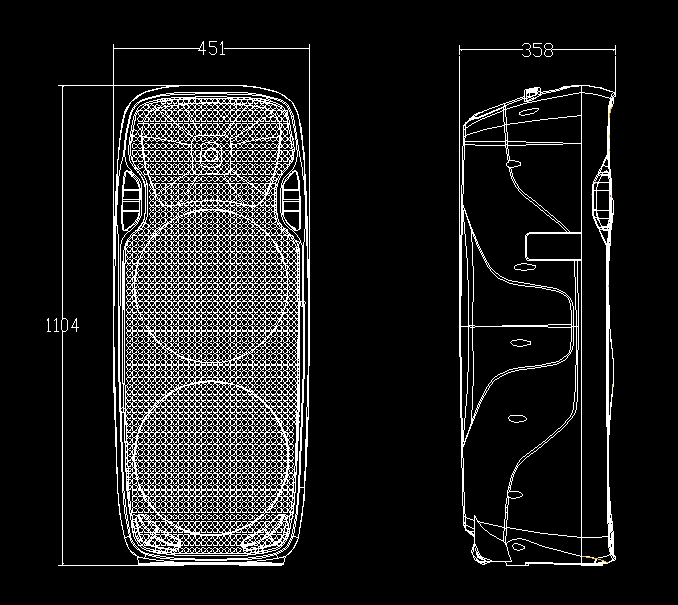 Корпус PRESTO-215A MP3 имеет стильный современный дизайн и специализированную конструкцию для удаления резонансов в области низких частот. Материал изготовления пластик, черный цвет. Габаритные размеры 1104х451х358 мм, вес 30 кг. Питание от сети 220В. Для удобства перемещения предусмотрены колесики; установка напольная или же на акустическую стойку формата "саб/сат", в нижней части корпуса крепление типа "стакан 35 мм".