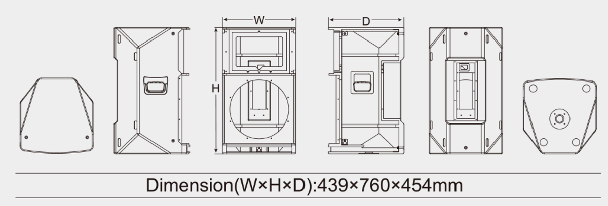 Оснащена двумя динамиками: НЧ-драйвер диаметром 15 дюймов и ВЧ-драйвер диаметром 1,75 дюйма. Каждый из динамиков оборудован системой охлаждения. Рупор АС выполнен из композитного материала DMF, которое создаёт "тёплый" и динамичный звук. Акустическое покрытие соответствует углам 60° в горизонтальной плоскости и 40° в вертикальной.