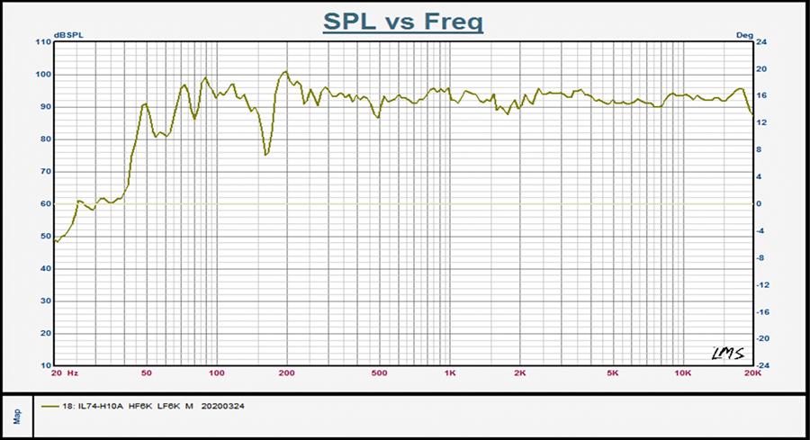 Акустика оснащена двумя (2) динамиками: ВЧ-драйвер 1" и НЧ-вуфер 10". Частотная характеристика воспроизводимых сигналов 65 Гц - 18 кГц, чувствительность 94 дБ, максимальный уровень звукового давления SPL = 122 дБ. Диаграмма направленности имеет углы раскрытия 80° х 60° (горизонталь х вертикаль), допускается поворот рупора и эксплуатация АС в качестве компактного сценического монитора. Два встроенных усилителя класса AB, один для низкочастотной составляющей, а второй для высокочастотного динамика. Мощность (RMS) составляет 200 Вт.