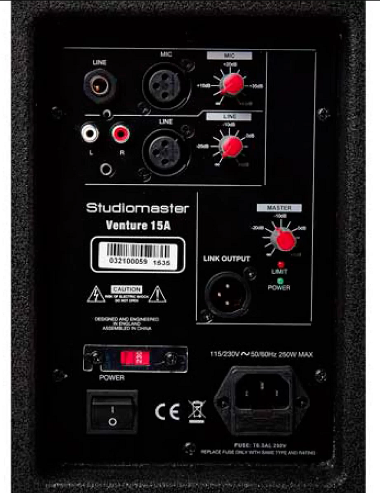STUDIOMASTER VENTURE 15A - двухполосная активная акустическая система, которая разработана для высококачественного озвучивания коммерческих помещений. Прекрасное воспроизведение музыки без дополнительных усилителей подойдет для создания атмосферы в ресторанах, кафе или барах, проведения промо-акций в магазинах, выступлений и т.д., и т.п.