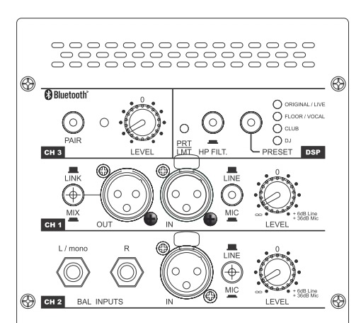 Оснащение X-LITE 112A. Два (2) динамика: ВЧ-драйвер диаметром 1,4" и НЧ-вуфер диаметром двенадцать дюймов (12") со звуковой катушкой 2,5" (B&C custom). Bi-amp усиление класса D, мощность (RMS): 1200 Вт у НЧ составляющей и 300 Вт на ВЧ. Цифровой процессор обработки звука DSP с четырьмя пресетами, ФВЧ. Трехканальный микшер: аудиовходы 2х XLR и 1х Jack TRS (стерео), аудиовыход 1х XLR. Для беспроводного подключения через модуль Bluetooth (версия 5.0) предусмотрен выделенный канал. На тыльную сторону корпуса вынесены коннекторы и элементы управления: регуляторы громкости, селектор пресетов, переключатель каналов ch1/mix.