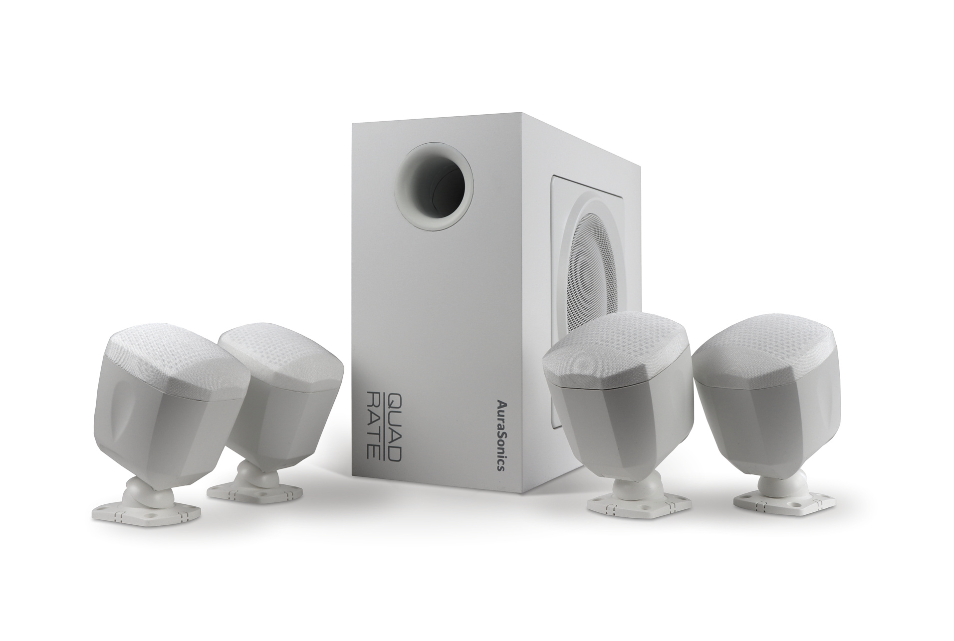 AuraSonics QUADRATE-WH - это звуковой комплект для создания системы озвучивания помещений небольших площадей (до 50 м2). В состав комплекта входит один (1) сабвуфер QUADRATE SUB и четыре (4) широкополосных колонки-сателлита с динамиками 3 дюйма и мощностью 15 Вт. Подробнее о сабвуфере на странице товара по ссылке.