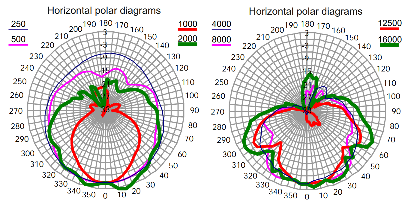 Характеристики MODUS 4820LA: диапазон воспроизводимых частот 58 Гц - 20 000 Гц (уровень -6 дБ). Максимальный уровень звукового давления SPL 137 дБ, входной импеданс 22 кОм. Диаграмма направленности оптимизирована с помощью BEM, углы раскрыва в горизонтальной Х вертикальной плоскости: 90° х 20°.