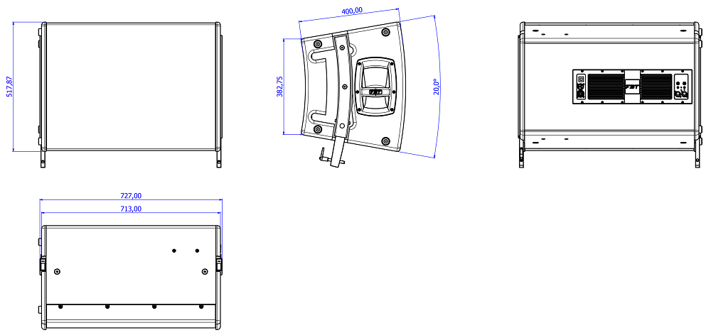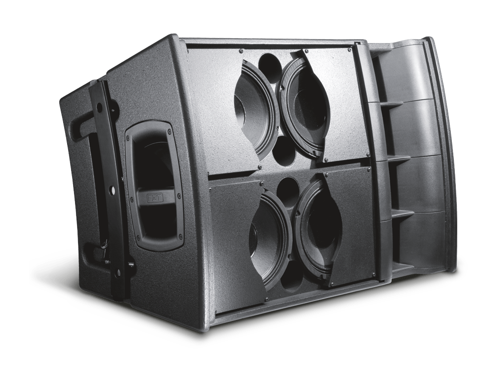 Легко объединяется в массив с указанными выше приборами. Предусмотрены разнообразные варианты монтажа: вертикальный подвес, друг на друга (в стек) на подставку или тележку, на акустическую стойку крепящуюся к сабвуферу.