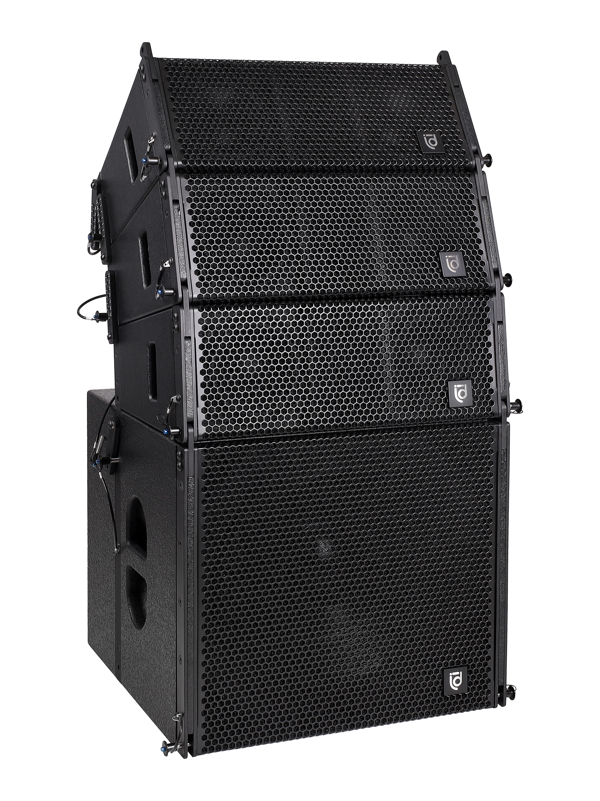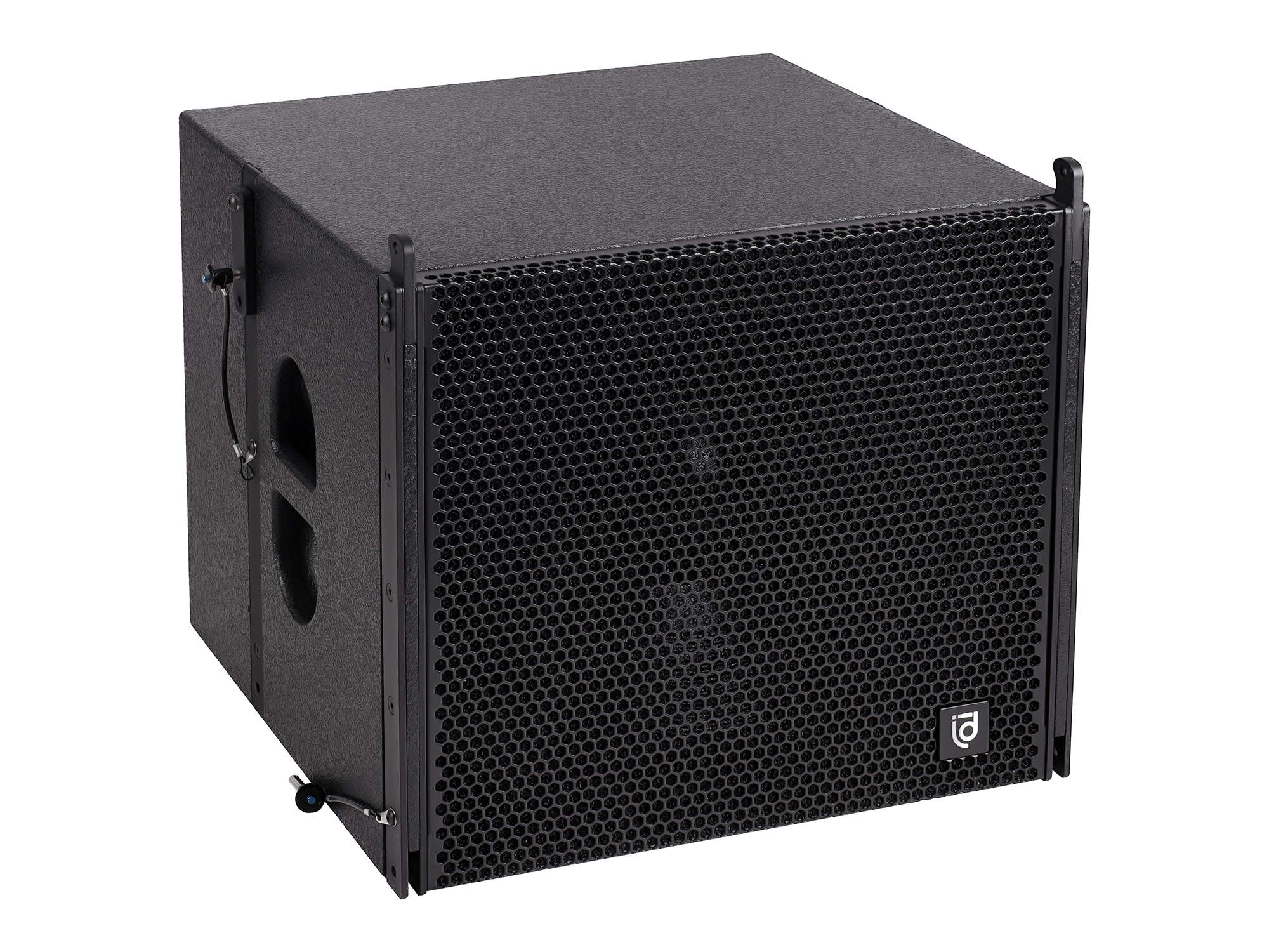 Сабвуферы могут быть установлены в конфигурации граундстек или подвешены с использованием рамы.