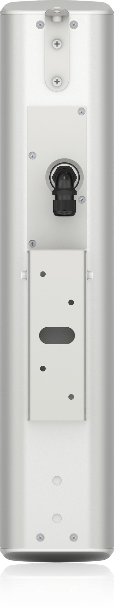 Переключатель мощности и блок аудиоразъёмов находится под специальной герметичной крышкой на задней части корпуса. Корпус выполнен из экструдированного алюминия, динамики помещены под стальную сетку, IP64. Монтаж настенный, кронштейн в комплекте. Габаритные размеры 599x121x147 мм, вес 8,2 кг. Белый цвет.