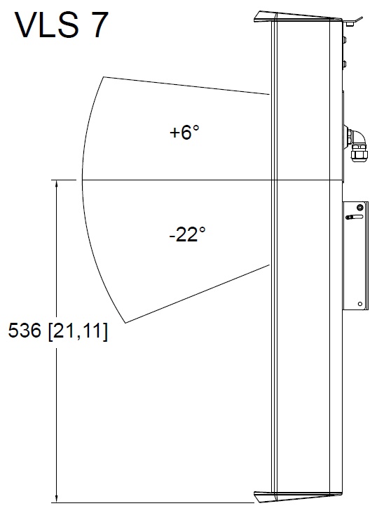 Диаграмма направленности у акустических систем колонного типа узкая в вертикальной плоскости, что существенно снижает эффект посторонних ревербераций, а в горизонтальной плоскости дисперсия наоборот широкая для обеспечения равномерного охвата звуковыми волнами всего пространства с меньшим количеством задействованных АС. Модель VLS 7 оснащена семью (7) широкополосными драйверами диаметром 3,5 дюйма с применением технологии FAST (Focussed Asymmetrical Shaping Technology). За счёт этого формируется асимметричная диаграмма направленности в вертикальной плоскости со смещением вниз. Дисперсия по уровню -6 дБ составляет 130° (горизонталь) x +6° / -22° (вертикаль). Чувствительность = 90 дБ, максимальное звуковое давление SPL 118 дБ, рабочий диапазон частот 150 Гц - 11 кГц (-3 дБ).