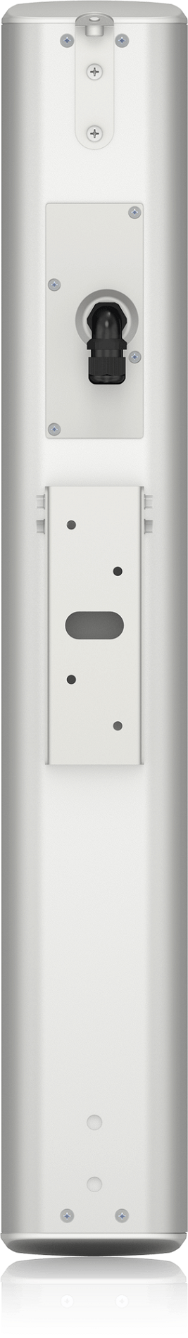 Переключатель мощности и блок аудиоразъёмов находится под специальной герметичной крышкой на задней части корпуса. Корпус выполнен из экструдированного алюминия, динамики помещены под стальную сетку с антиводным покрытием. IP65, возможно применение на улице. Монтаж настенный, кронштейн в комплекте. Габаритные размеры 816x121x147 мм, вес 10,8 кг. Белый цвет. Сертификация EN54-24.