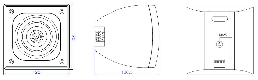 Универсальный громкоговоритель, может применяться как в низкоомных линиях (импеданс 16 Ом), так и в трансляционных, с рабочим напряжением 100В. Мощность зависит от типа линии и выбирается путем подключения одного из отводов понижающего трансформатора: импеданс 16 Ом, мощность = 20 Вт; напряжение 100В, мощность - 10 / 20 Вт. Подключение с помощью коннектора типа Euroblock.