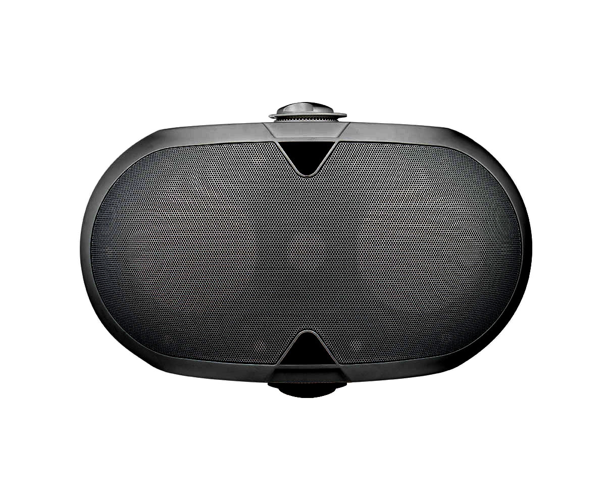 Стильный современный дизайн корпуса выполнен в форме эллипса, подойдет к различным, включая взыскательные, интерьерам. Материалом выступает высококачественный ABS-пластик, динамики защищает мелкоячеистая стальная сетка. Черный цвет. Габаритные размеры 360х210х195 мм, вес 4.2 кг. Монтаж настенный, с помощью стального поворотного кронштейна типа "лира", который входит в комплект поставки.