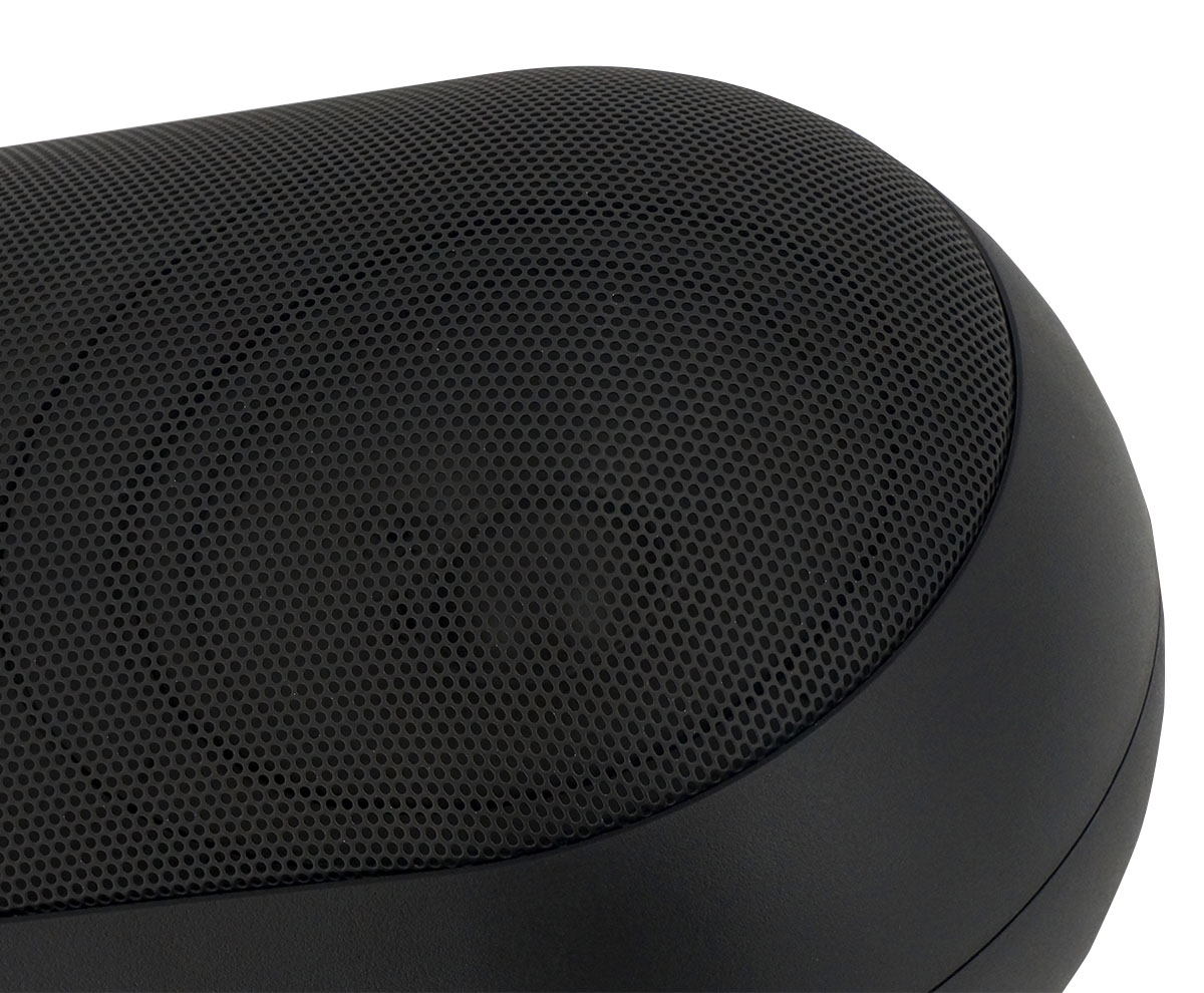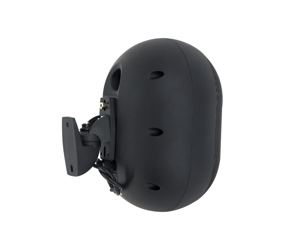 Стильный современный дизайн корпуса выполнен в форме эллипса, подойдет к различным, включая взыскательные, интерьерам. Материалом выступает высококачественный ABS-пластик, динамики защищает мелкоячеистая стальная сетка. Черный цвет. Габаритные размеры 178х236х255 мм, вес 2.4 кг. Монтаж настенный, с помощью стального поворотного кронштейна типа "лира", который входит в комплект поставки.