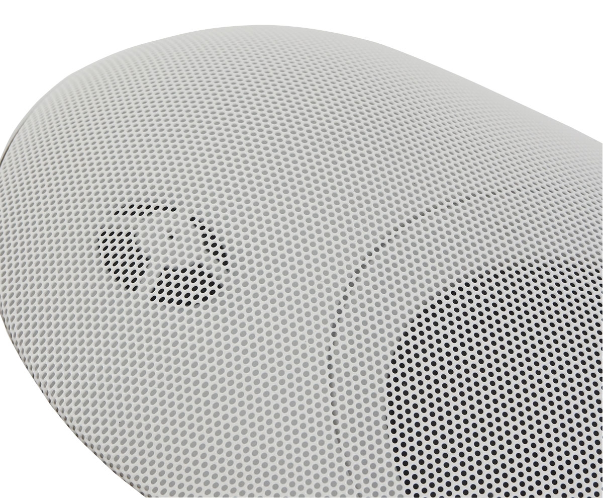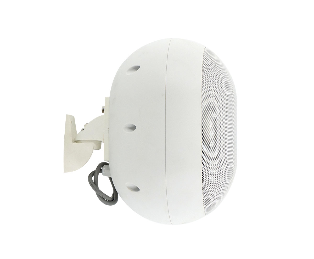 Стильный современный дизайн корпуса выполнен в форме эллипса, подойдет к различным, включая взыскательные, интерьерам. Материалом выступает высококачественный ABS-пластик, динамики защищает мелкоячеистая стальная сетка. Белый цвет. Габаритные размеры 178х236х255 мм, вес 2.4 кг. Монтаж настенный, с помощью стального поворотного кронштейна типа "лира", который входит в комплект поставки.