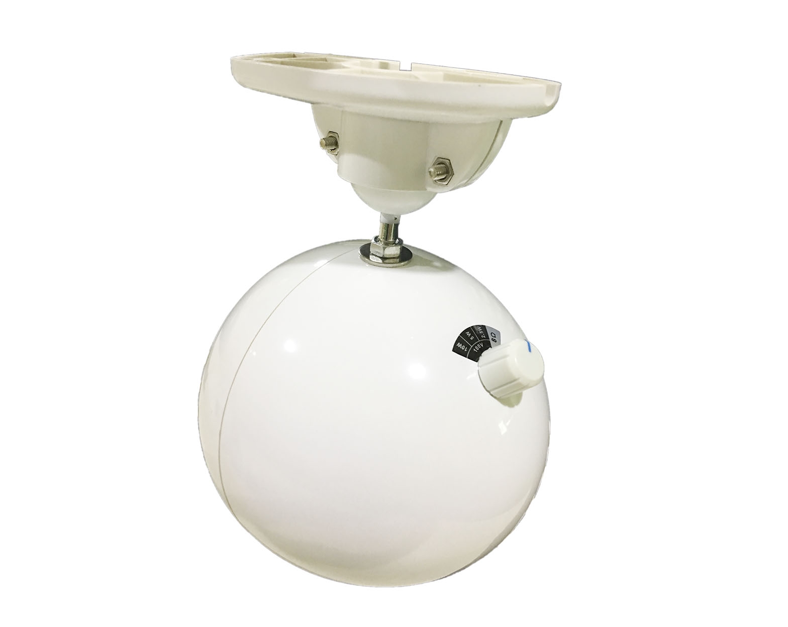 Необычный дизайн корпуса SPACE-10T выполнен в форме сферы, отлично подходит к современным интерьерам. Материалом выступает высококачественный пластик, динамик защищает мелкоячеистая металлическая сетка. Белый цвет. Габаритные размеры Ø100 мм, вес всего 500 г. Монтаж на стену, потолок или любую иную плоскость с помощью наклонно-поворотного кронштейна который входит в комплект поставки.