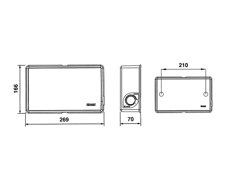 Корпус выполнен в современном стильном дизайне, материал ABS-пластик, динамик защищает мелкоячеистая металлическая решетка. Белый цвет. Габаритные размеры 269х166х70 мм, вес 1 кг. Монтаж на стену, крепление с помощью винтов.