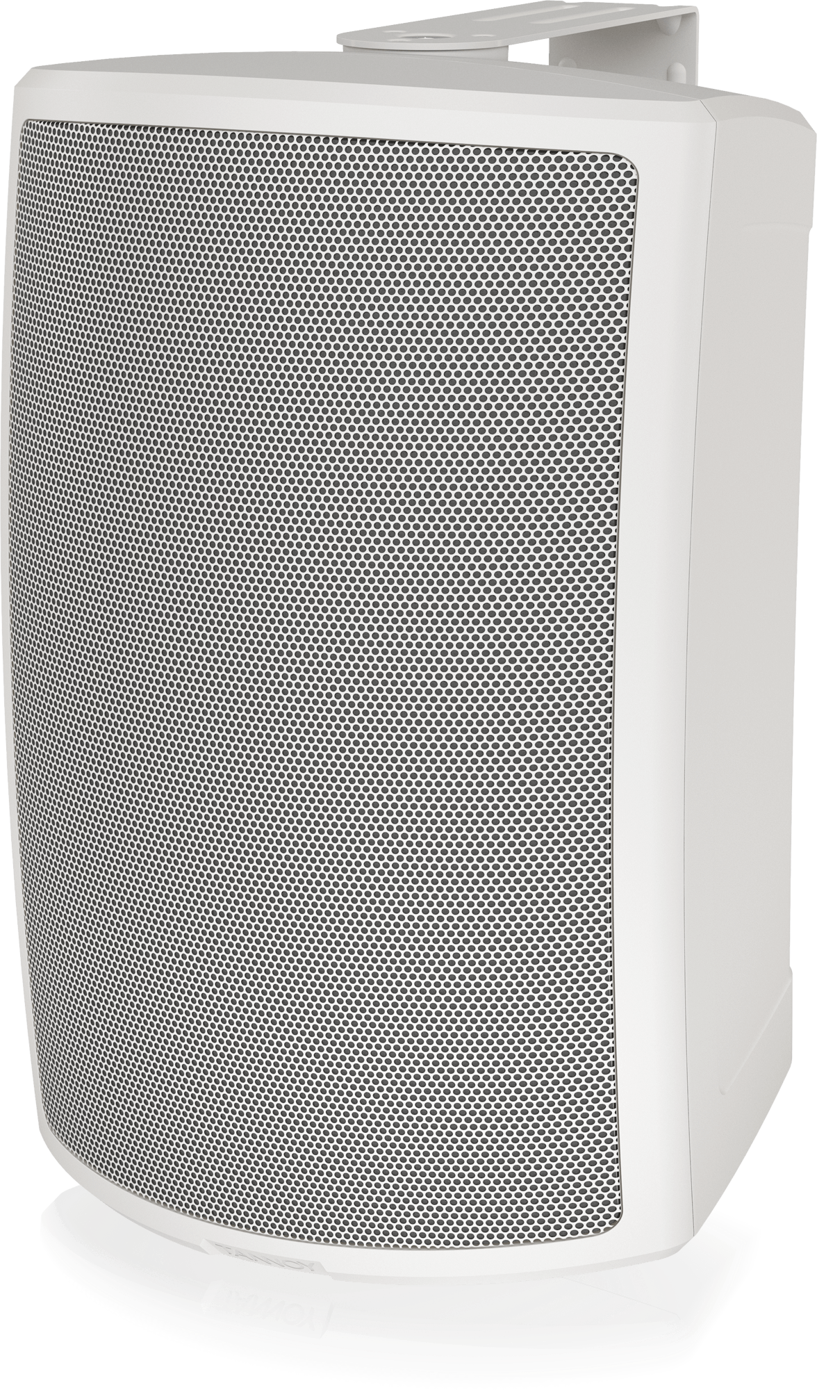 На задней панели также предусмотрен съёмный герметичный аудиоразъём на винтовых клеммах. Передняя часть АС защищена решёткой из стали покрытой порошковым окрасом. Корпус выполнен из всепогодного ABS-пластика, IP65. Габаритные размеры 365x230x269 мм, вес 6,08 кг. Монтаж настенный на кронштейн в комплекте. Цвет белый.