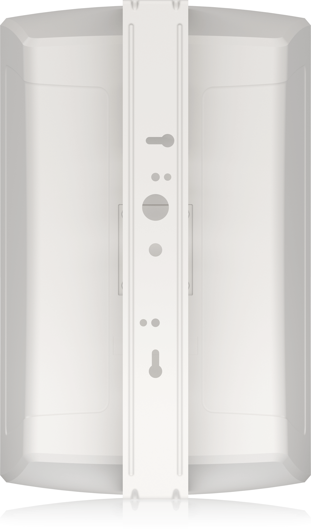 На задней панели также предусмотрен съёмный герметичный аудиоразъём на винтовых клеммах. Передняя часть АС защищена решёткой из стали покрытой порошковым окрасом. Корпус выполнен из всепогодного ABS-пластика, IP65. Габаритные размеры 410x260x306 мм, вес 7,82 кг. Монтаж настенный на кронштейн в комплекте. Цвет белый.