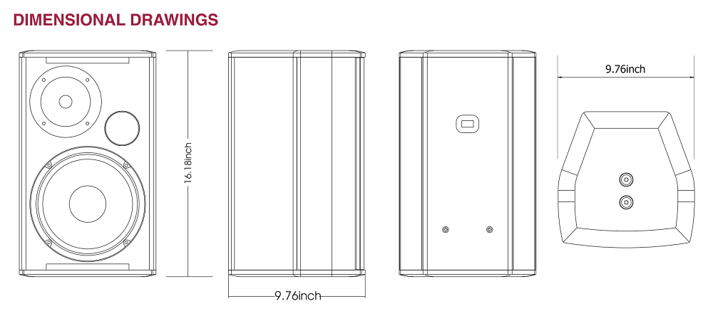 АС подключается в низкоомные акустические линии с импедансом 8 Ом (опционально можно докупить трансформатор для линий 100В). Программная мощность составляет 350 Вт, продолжительная 175, а пиковая 700 Вт. На тыльной части АС расположены коннекторы типа Euroblock 4-pin. Корпус из фанеры балтийской березы толщиной 12 мм, стальная решетка с порошковым окрасом защищает лицевую часть.