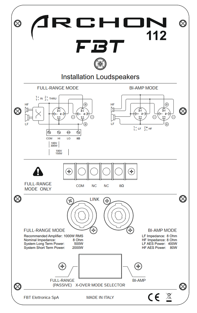 FBT ARCHON 112 - двухполосная пассивная акустическая система из дизайнерской серии ARCHON итальянского бренда FBT, которая создана с целью обеспечения высокого качества музыкального вещания в помещениях любого типа и назначения. Хорошо подходит для коммерческого использования в ресторанах, барах, пабах, фитнесс-центрах, магазинах, клубах и тому подобных местах.