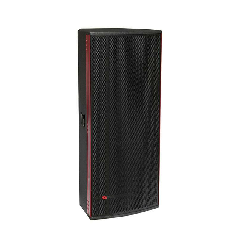 Акустика оснащена тремя (3) динамиками: ВЧ-драйвер 3" и два НЧ-вуфера по 15". Импеданс 4 Ом, мощность 1100 Вт, работает совместно с низкоомными усилителями. Частотная характеристика воспроизводимых сигналов 48 Гц - 20 кГц, максимальный уровень звукового давления SPL = 135 дБ. Диаграмма направленности имеет углы раскрытия 90° х 60° (горизонталь х вертикаль); поворачиваемый рупор выполнен из композитного материала, АС можно эксплуатировать как сценический монитор. На тыльной части акустической системы расположены аудиовходы 2х Speakon 4-pin.