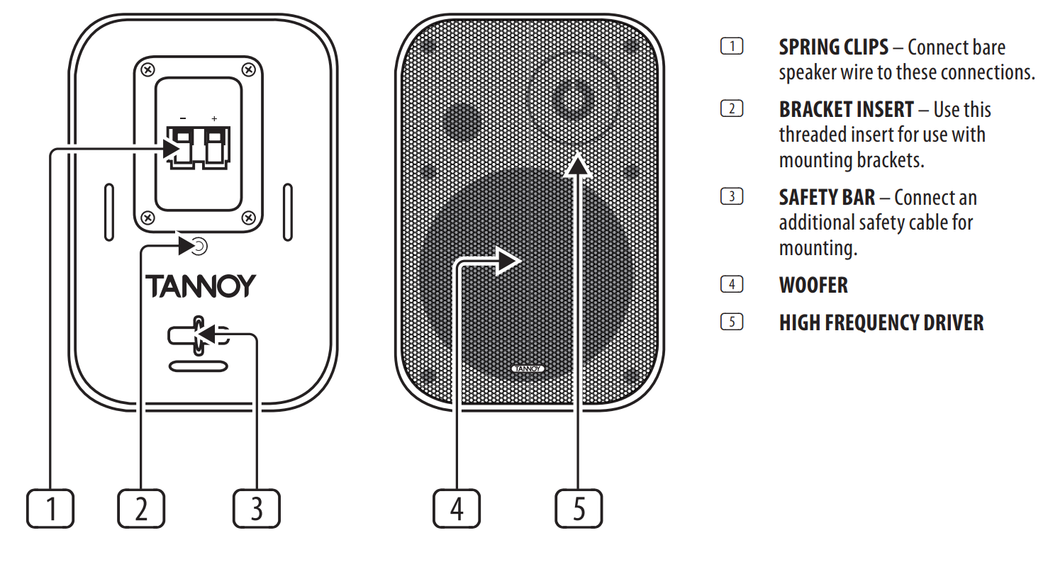 Данная модель оборудована двумя (2) динамиками: конический НЧ-вуфер диаметром 5,3" + купольный ВЧ-драйвер диаметром 0,5". Рабочий диапазон частот покрывает большую часть слышимых: 70 - 20 000 Гц; чувствительность 86 дБ; максимальное звуковое давление 100 дБ; кроссовер на частоте 5,2 кГц. Диаграмма направленности по уровню -6 дБ: 150° х 115° (горизонталь Х вертикаль). Эксплуатируется в низкоомных линиях с импедансом 4 Ом. Номинальная мощность равна 25 Вт, пиковая 100 Вт. Аудиовход реализован на винтовых клеммах.