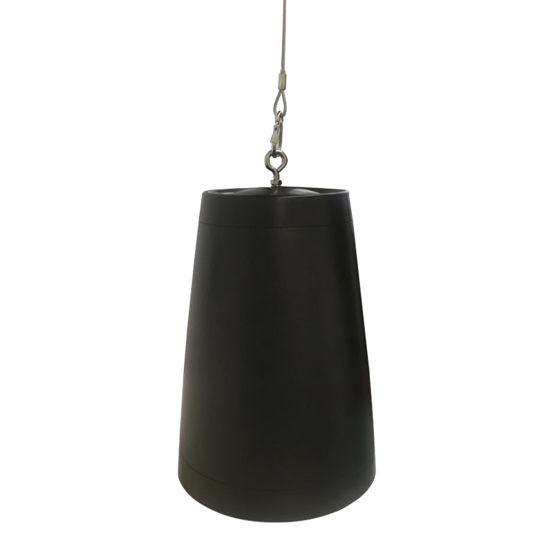 VOLTA CONE-850T - двухполосный трансляционный пассивный громкоговоритель с коническим корпусом подвесного типа. Создан для работы в составе систем музыкально-речевых трансляций и голосового оповещения. Подходит для коммерческой эксплуатации в торговых и развлекательных центрах, выставочных комплексах, бутиках, офисных пространствах, спортивных залах и других помещениях с высокими потолками где требуется звук высокого уровня.