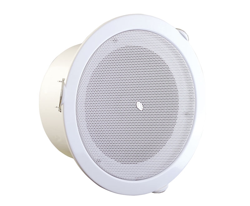 Корпус выполнен из пластика, динамик защищает мелкоячеистая металлическая сетка. Белый цвет. Габаритные размеры Ø175 мм, высота 60 мм, вес 750 г. Монтаж врезной, в потолок, диаметр монтажного отверстия 155 мм.