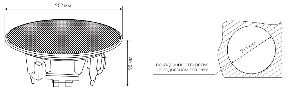 | Монтаж: | в помещениях, встраивается в потолок, Ø монтажного отверстия 211 мм |