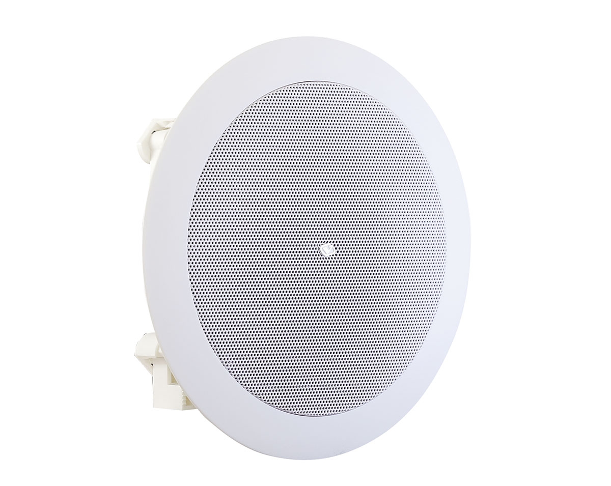 Корпус выполнен из прочного пластика, динамик защищает мелкоячеистая металлическая сетка. Белый цвет. Габаритные размеры Ø203 мм, высота 80 мм, вес 1.2 кг. Монтаж врезной, в потолок, диаметр монтажного отверстия 175 мм.