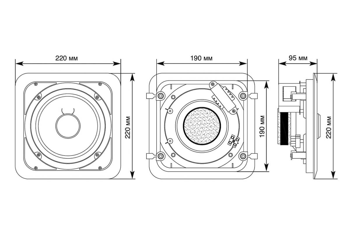 | Габаритные размеры: | 220х220х95 мм, квадратная форма |