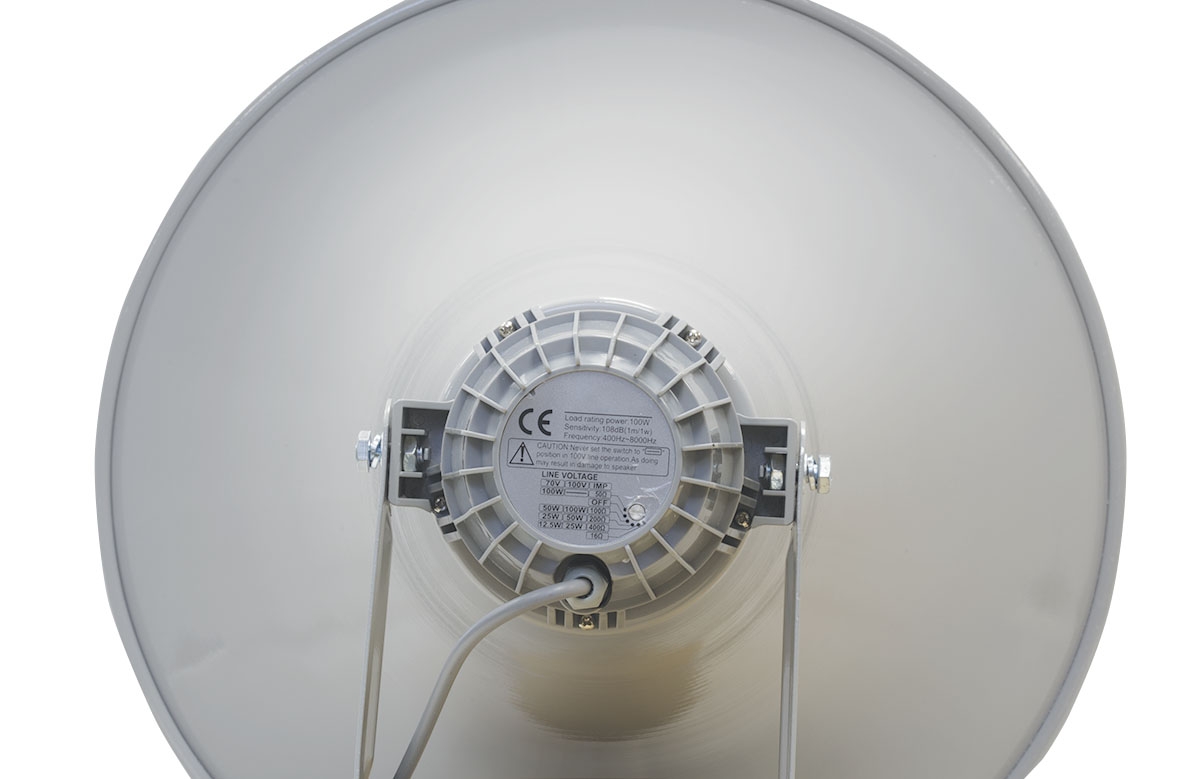 Оснащен трансформатором, благодаря чему используется в линиях с напряжением 70/100В и работает под управлением трансляционного усилителя. Мощность зависит от напряжения в линии и выбирается селектором из следующих вариантов: 12.5 / 25 / 50 / 100 Вт (при 70В) и 25 / 50 / 100 Вт (при 100В). Для подключения в линию используется кабельный ввод.