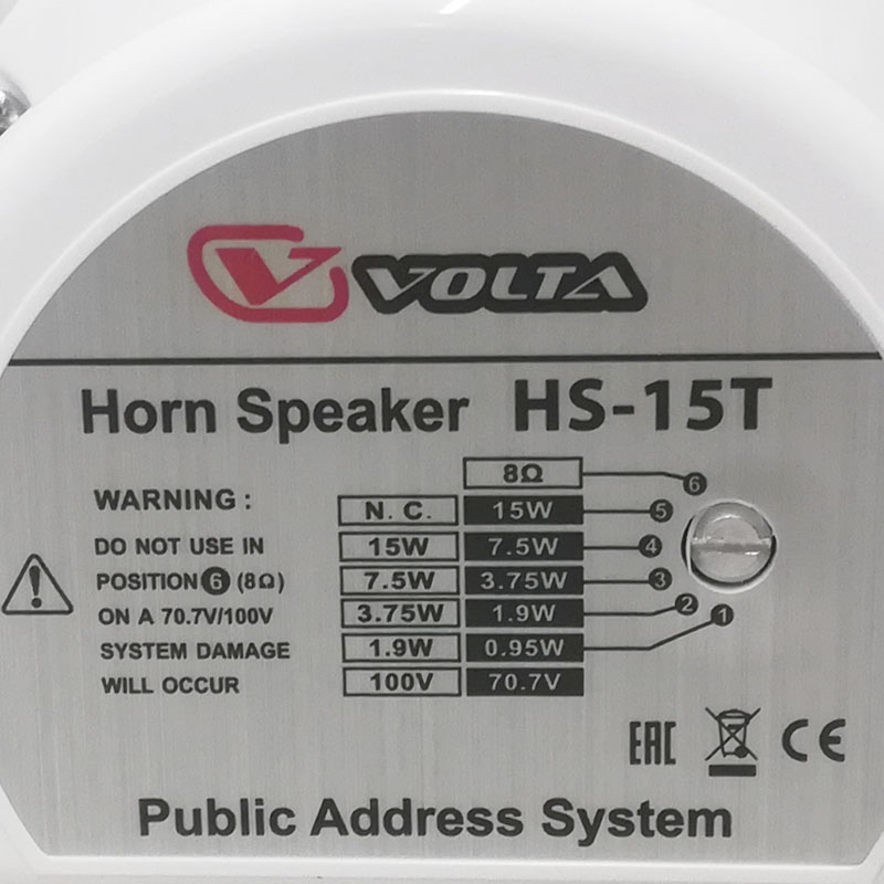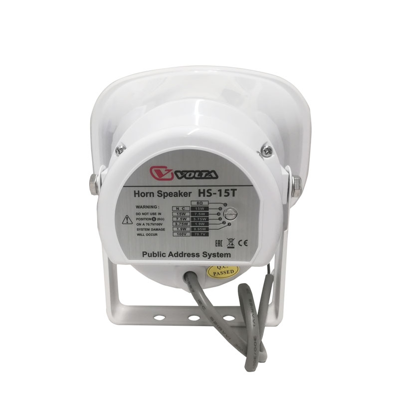 VOLTA HS-15T - всепогодный рупорный громкоговоритель. Создан для передачи речи в составе систем голосового оповещения в условиях повышенного фонового шума. Подходит для применения на промышленных объектах, в цехах и складских помещениях, на вокзалах и площадях, в гипермаркетах, на спортивных аренах, а также для озвучивания любых открытых уличных пространств.