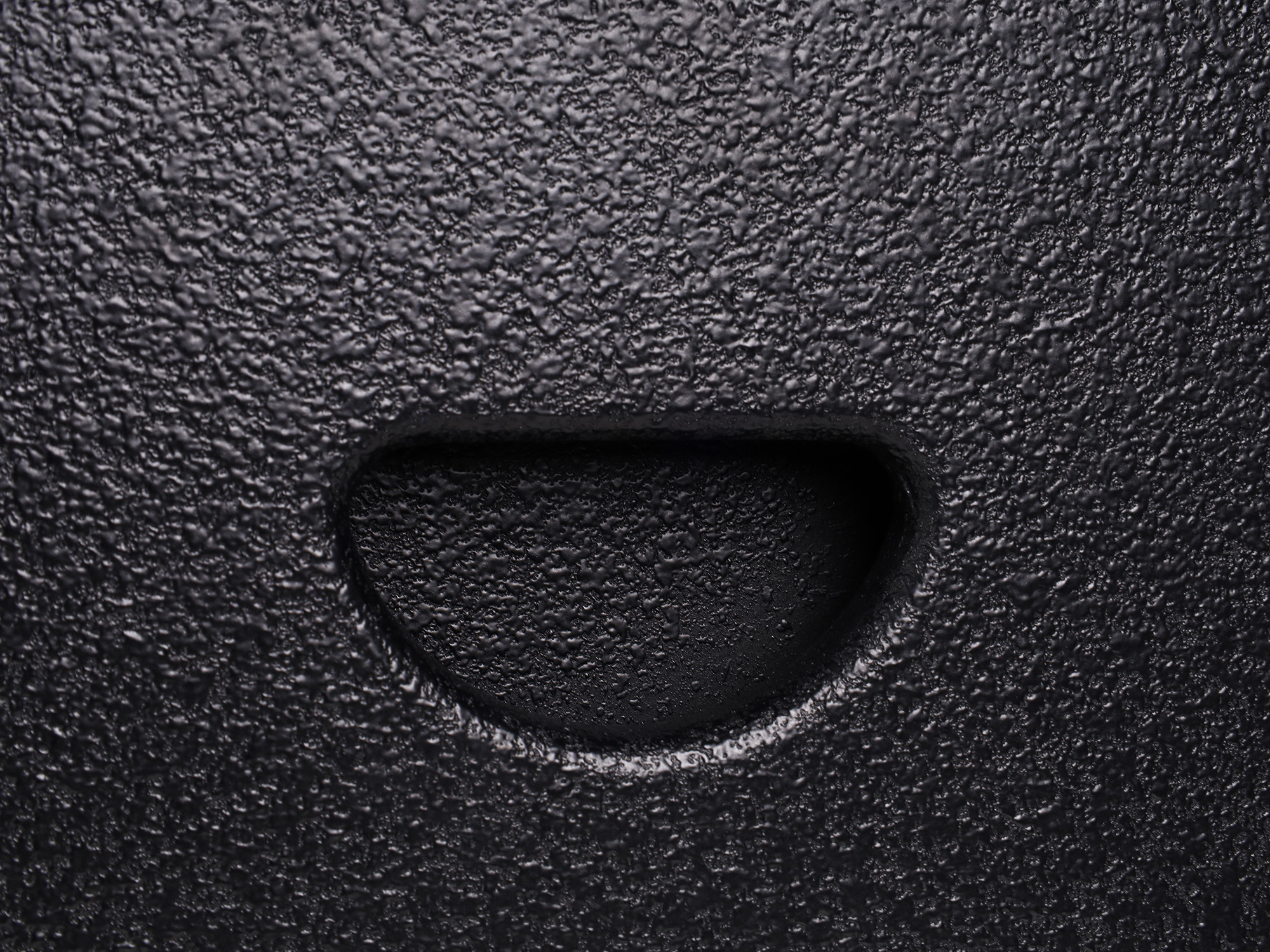 В боковых панелях находятся ручки для переноски. На задней панели расположены вход для подключения усилителя INPUT и выход LINK OUT для параллельного подключения второго сабвуфера, выполненные на разъёмах Speakon.