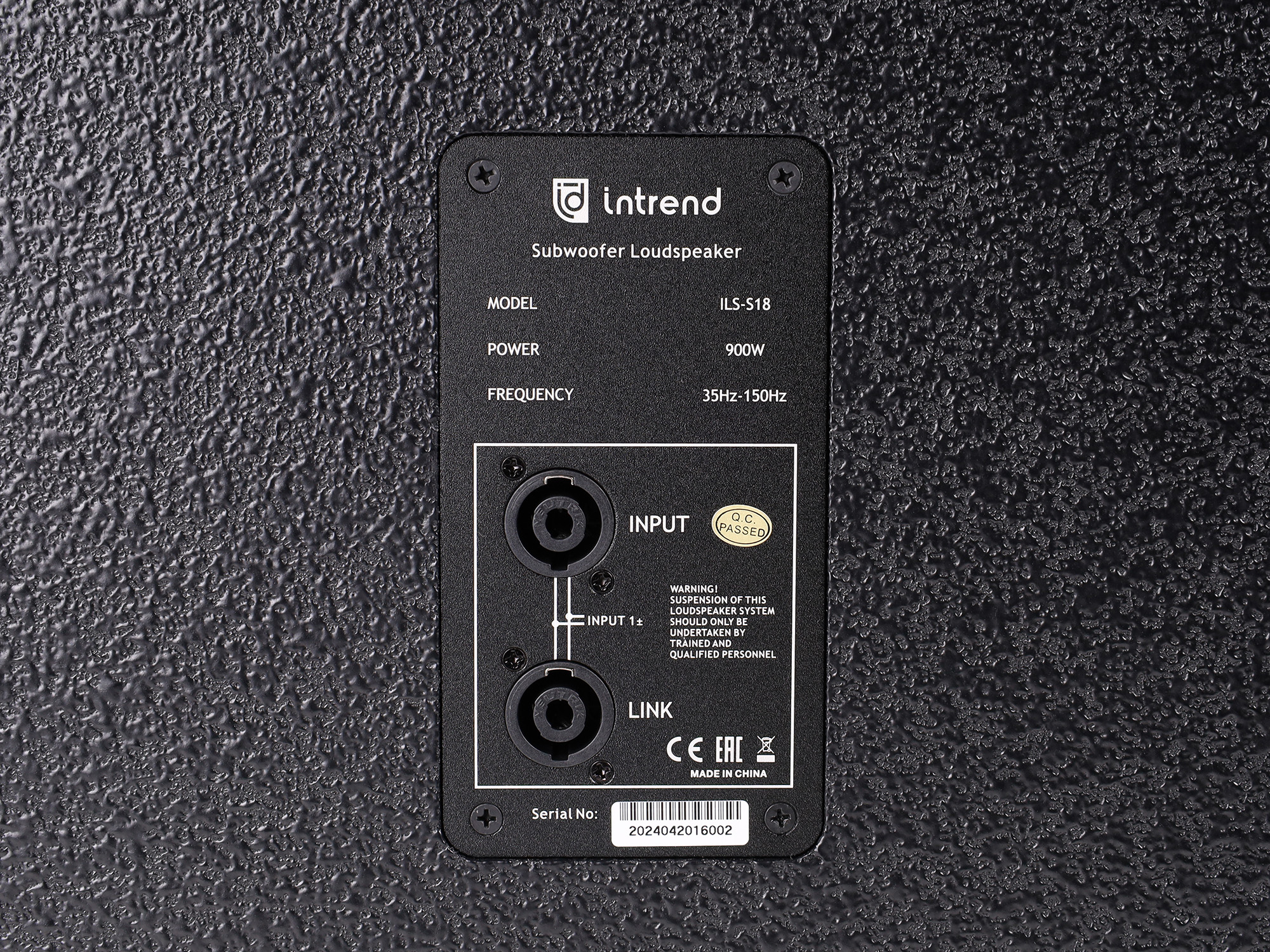 Кабинет прямого излучения с 18-дюймовым неодимовым динамиком может быть установлен на пол, использован в составе НЧ кластера или в подвесе. Корпус изготовлен из фанеры, покрытой ударопрочной черной краской.