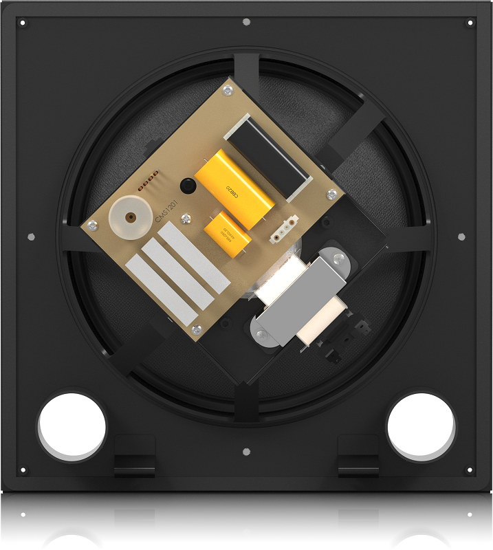 Поворотный регулятор расположен на задней части, также здесь расположен блок клеммных аудиоразъёмов. Корпус выполнен из стали с порошковым окрасом в черный цвет. Габаритные размеры 331x725x516 мм, вес 7,9 кг. Монтаж встраиваемый, рекомендуется использовать монтажный короб CMS1201 BACKCAN.