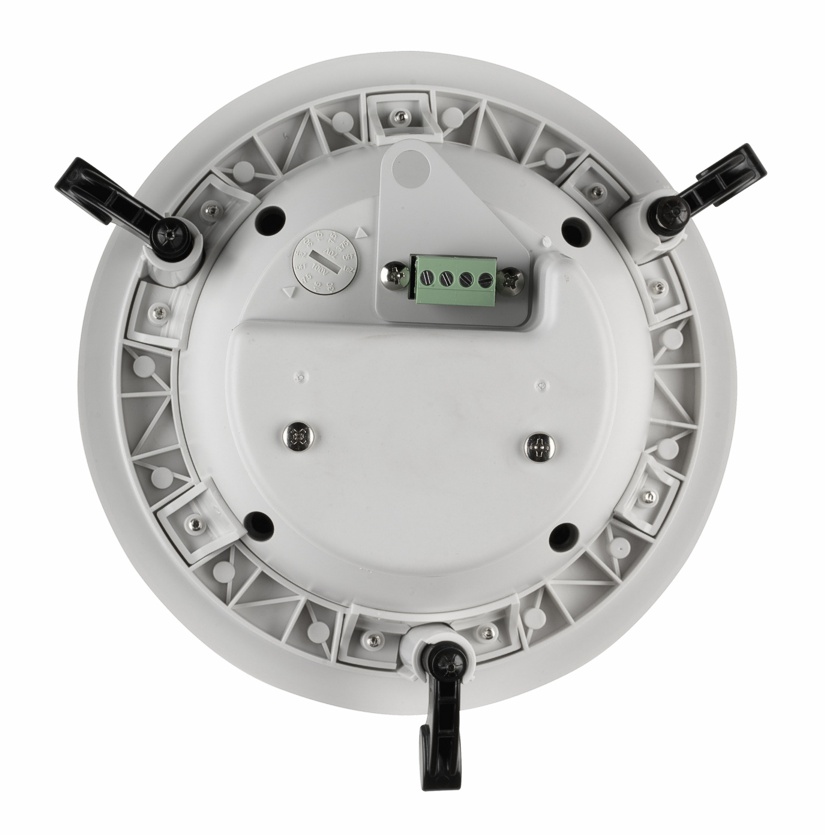На задней части АС размещён съёмный герметичный блок клеммных аудиоразъёмов. Корпус и задний колпак выполнены из ABS-пластика (тип UL 94V-0), передняя часть надёжно защищена от пыли и влаги решеткой из стали с антиводным покрытием. Габаритные размеры Ø205x148 мм, вес 3,2 кг. Монтаж встраиваемый в подвесной потолок. Особенностью модели является возможность при установке изменять угол наклона АС, что улучшает итоговый звук. Соответствует UL 1480, UL 2043.