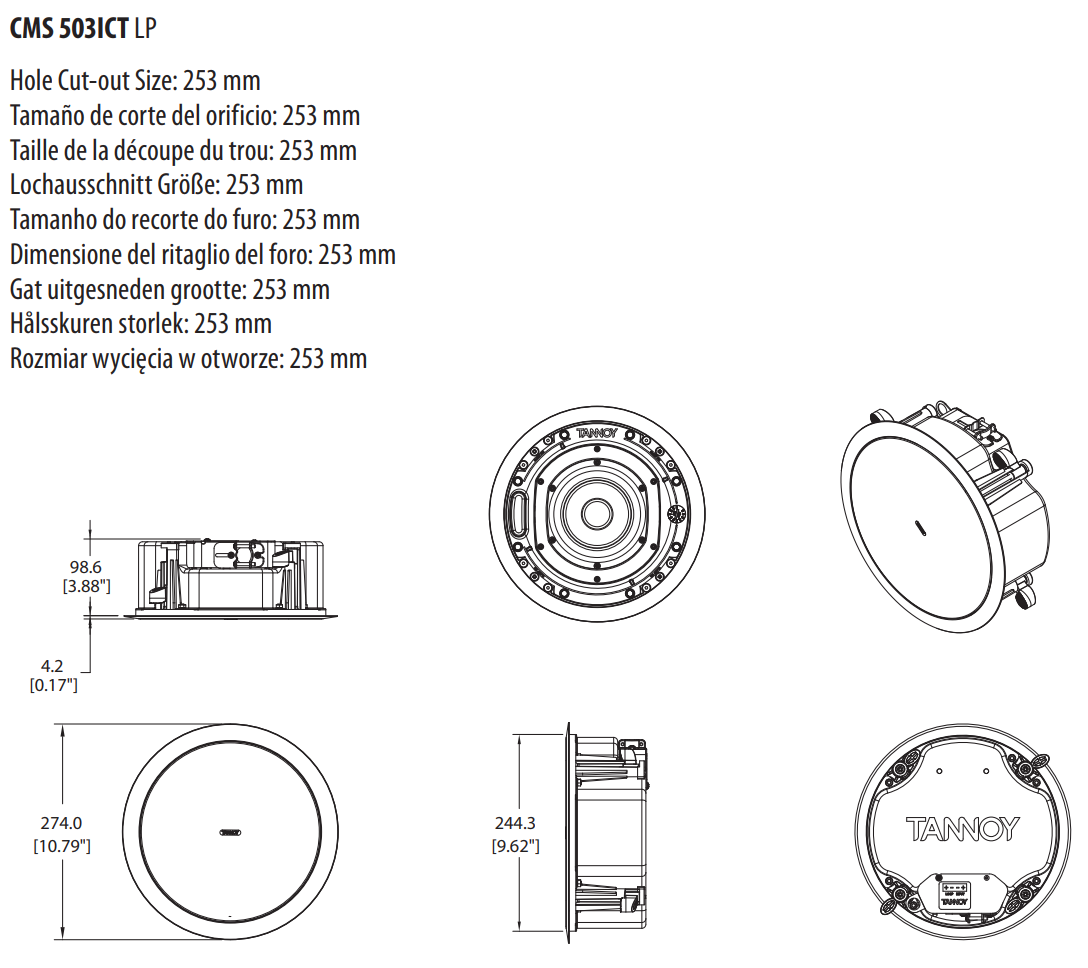 TANNOY CMS 503ICT LP - широкополосная пассивная низкопрофильная акустическая система из серии CMS 3.0 производства компании TANNOY. Используется в системах фонового озвучивания помещений различного назначения. Для ресторанов, баров, банков, отелей, ТРЦ и других мест требующих звука серьезного уровня.