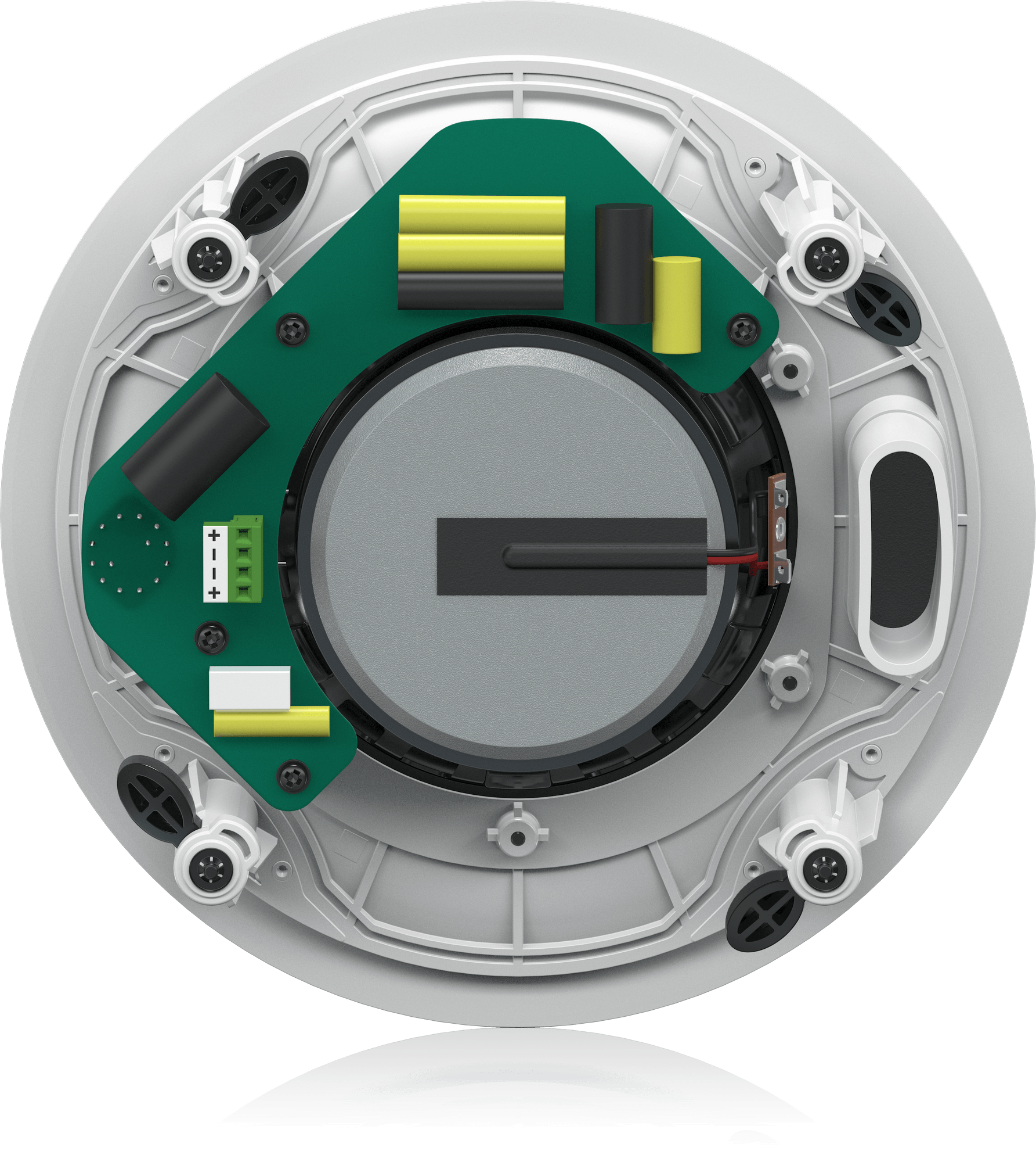 На задней части АС размещён съёмный герметичный блок клеммных аудиоразъёмов. Корпус выполнен из ABS-пластика (тип UL 94V-0), передняя часть надёжно защищена от пыли и влаги решеткой из стали с антиводным покрытием. Для установки в подвесной потолок и защиты корпуса сзади необходимо приобрести монтажный короб/задний колпак из оцинкованной стали BACKCAN CMS 603 PI.