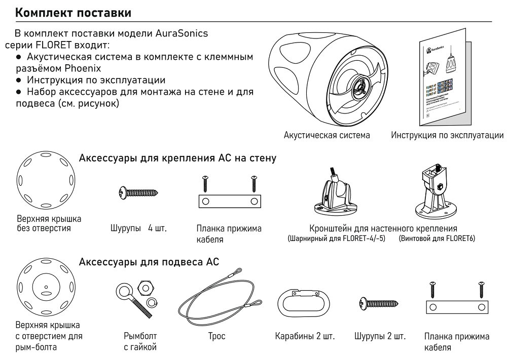 AURASONICS FLORET-5T-WH - двухполосный пассивный акустический прожектор из дизайнерской серии FLORET российского бренда AuraSonics. АС из данной линейки обеспечивает великолепное качество музыкального вещания и других видов аудиовещания плюс обладает оригинальной стильной конусообразной формой, напоминающей изысканный светильник. Благодаря влагозащищённому исполнению IP66, громкоговоритель можно применять не только в помещениях (рестораны, бары, отели, галереи и т.п.), но и на открытых уличных пространствах (парки, площади, зоны отдыха и т.д.). Оснащена двумя (2) динамиками расположенными коаксильным образом для минимизации фазовых искажений. ВЧ шёлковая купольная мембрана диаметром 1" дюйм и НЧ полипропиленовый диффузор диаметром 5,25" на резиновом подвесе.