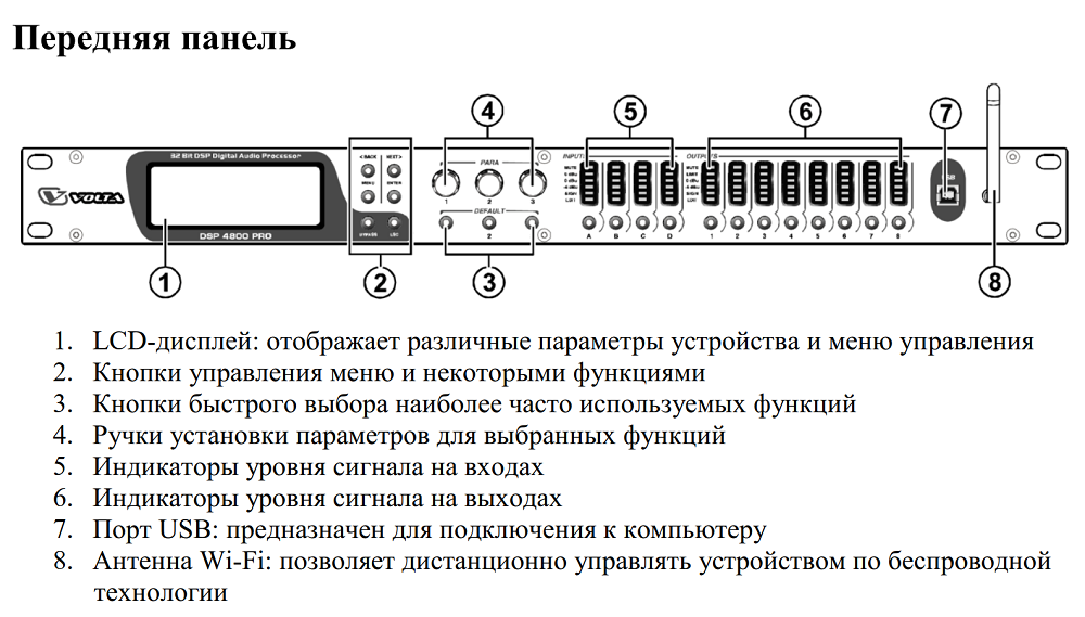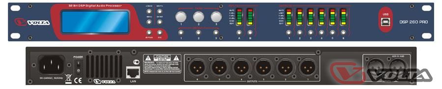 Цифровой аудиопроцессор DSP 260 PRO - профессиональное устройство для цифровой обработки аналоговых акустических сигналов и управления подключёнными аудиоприборами с целью оптимальной настройки воспроизведения звука. Встроенный DSP оснащён мощным продвинутым чипом, параметры дискретизации: 32 бит с плавающей, 96 кГц. Устройство эксплуатируется в музыкально-речевых системах для концертов, клубов, конференций, выставок, различных публичных мероприятий, лекций, видеоконференций и т.п. Идеально сочетается с профессиональной активной акустикой VOLTA.