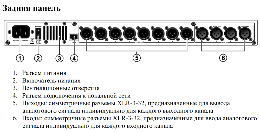 | Аудиовходы/аудиовыходы: | 2х XLR / 6х XLR |