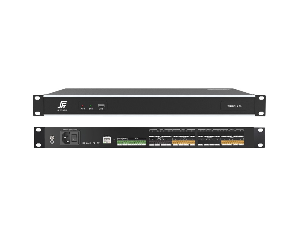Цифровой аудиопроцессор S-Track TIGER 84N - устройство для цифровой обработки аналоговых акустических сигналов с целью оптимальной настройки звучания аудиосистемы построенной на приборах производства S-Track или любых других производителей. Тридцати двух (32) битный DSP процессор с плавающей запятой и параметрами цифровизации: АЦП/ЦАП 24 бит/48 кГц. Встроенный микшер, системы автоматического подавления эха (AEC), шума (ANC) и обратной связи (AFC). Прекрасно подходит для эксплуатации в залах для конференций и выставок, проведения мероприятий, публичных выступлений, лекций, видеоконференций и т.п.